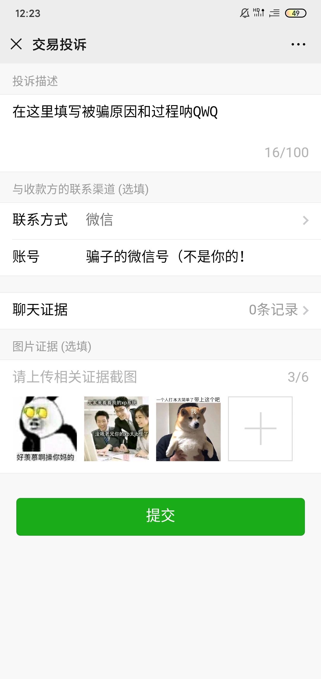 和骗子交流时,选择用微信支付,并且在微信聊天(要聊天记录截图的,而且不要发红包!!!
