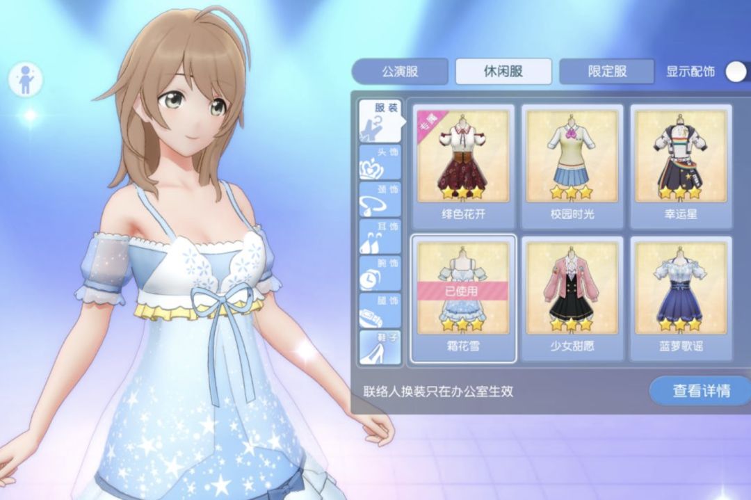 《樱桃湾之夏》还加入了粉丝们喜闻乐见的服装系统。“樱桃湾暖暖”的称号可不是白来的,现实中备受喜爱的公式演出服得到收录,可以通过推主线解锁图纸制作,服装、头饰、耳饰等可以替换,给偶像们换上不同的衣服也别有趣味呢。