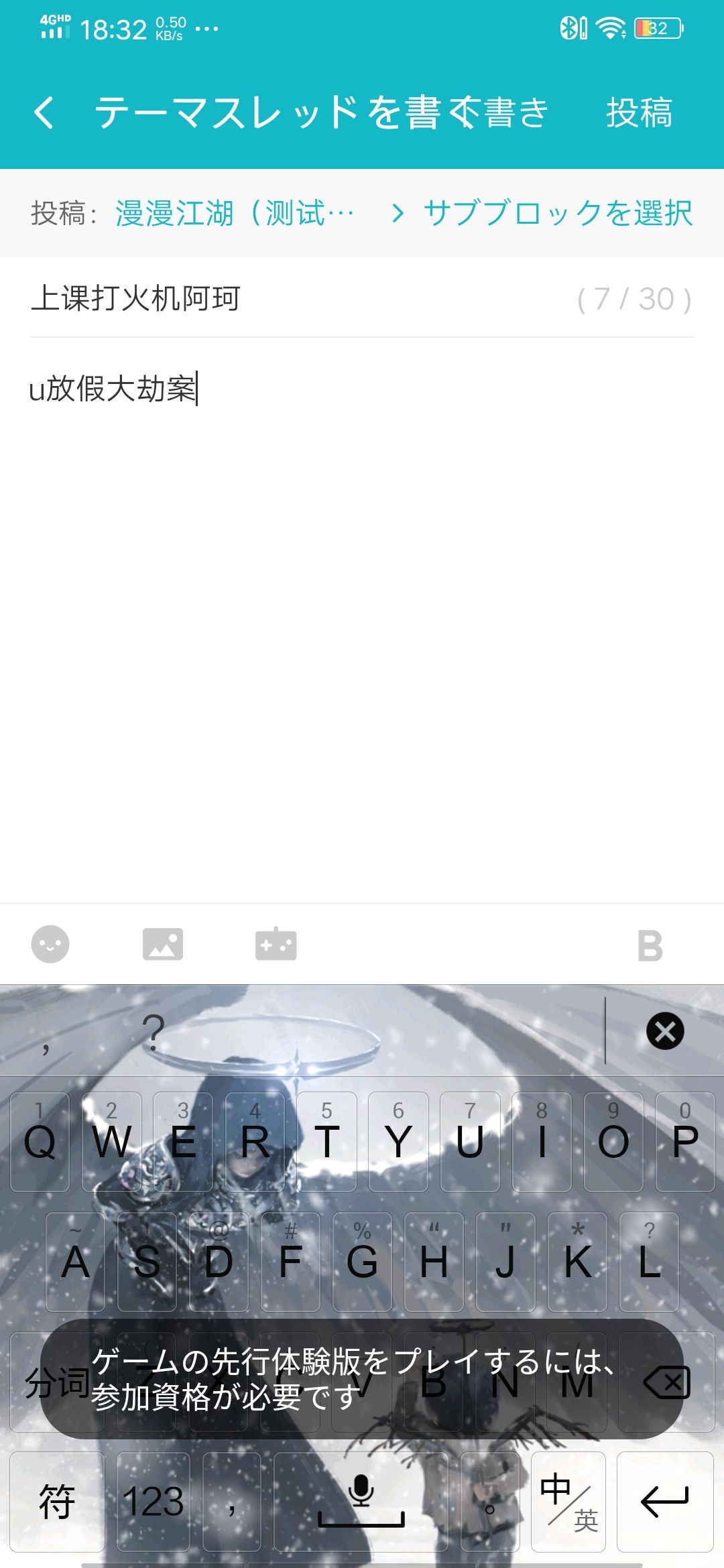 原本应该是因为“需要选择一个子版块才可发布”,这里日语却提示我“参与游戏的测试版需要拥有测试资格”我人都傻了,我就想问下是我手机语言的问题还是tap翻译错了?