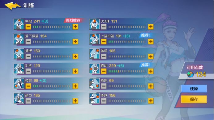 因此《热血街篮》中球员属性加点推荐从“中投,跑动,控球,上篮”方面下手,比例建议为1中投:2跑动:1控球:1上篮扣篮。其中“中投”和“上篮扣篮”属性影响命中率,可以保证球员的得分效率;“控球”可以降低球员持球时被防守方抢断几率;而“跑动”属性则为艾弗森模板核心,提高所有状态下的移动速度,这意味着在游戏中我们的速度要比对方更快,无论是持球加速还是突破变向,都能轻松甩开防守人,攻击篮筐得分。
