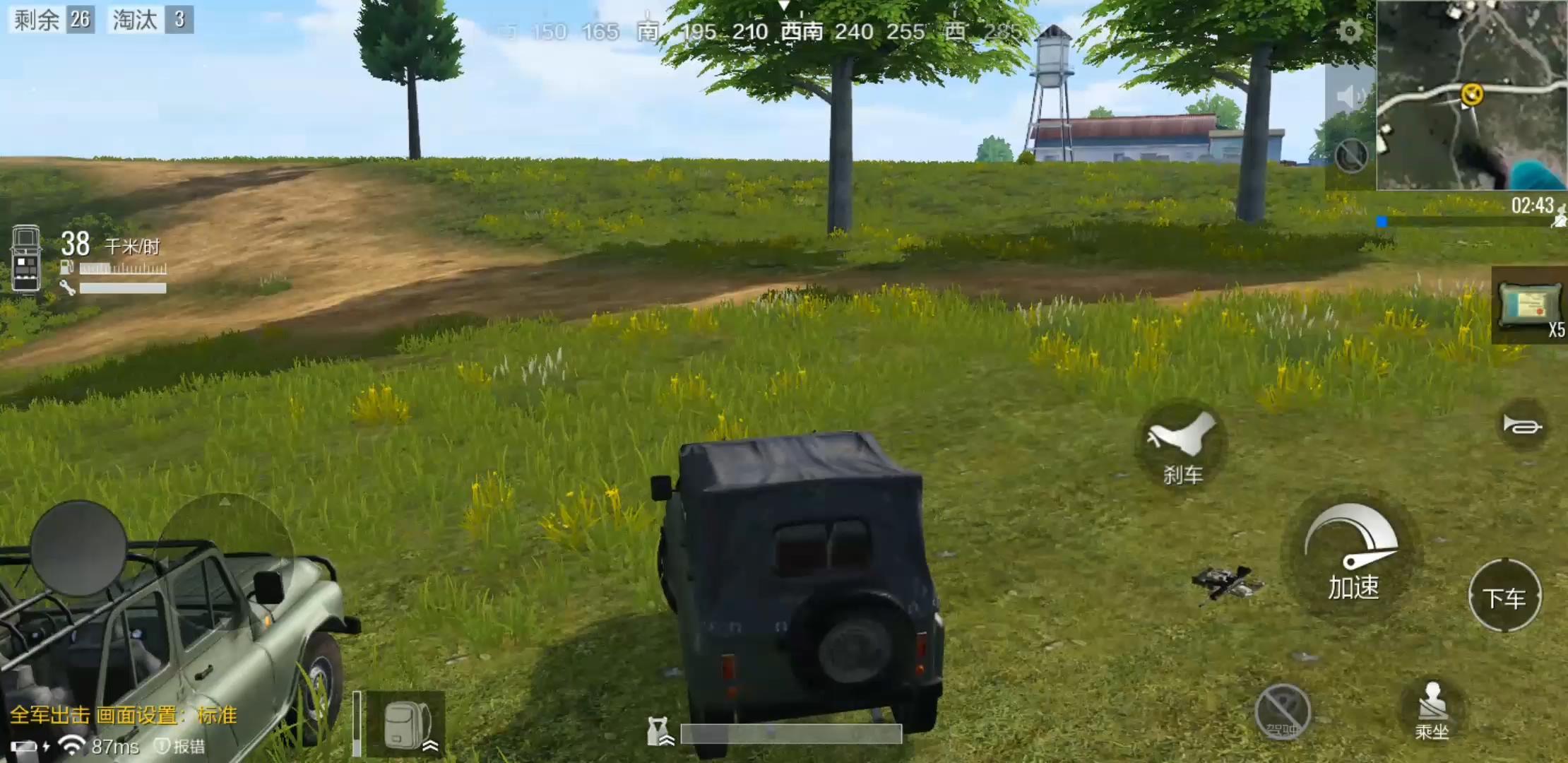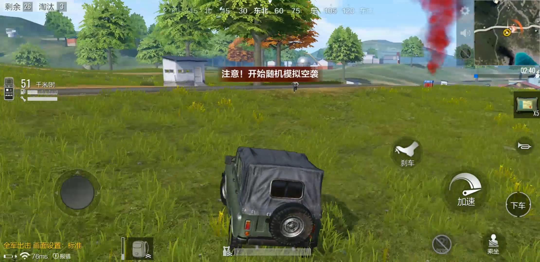 空投看着高速行驶的两辆车一路争斗横跨了整个草原,之后一辆车的前引擎处冒起了黑烟,看来是撑不住另一辆车的猛烈火力先行战败了!之后空投的小眼睛突然瞟到有两个地面玩家竟然在自己的正下方等着那辆车的到来!四目双枪,肃杀的气氛都快要渲染到在空中的空投自己了!空投本以为胜利的那车人会是最后的主人,没想到自己身下早已有两位悍将存在!能悄无声息地潜到自己身下,想来也不会是无能之辈,若是落入这两人手中也未尝不可,不算浪费了自己的一肚子好东西。