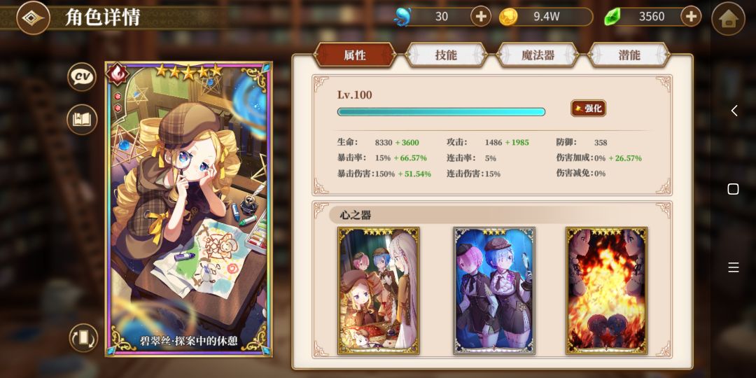先来看一下彩拉,我的彩拉只是二宝的弟弟,所以想做到带罐子无真空期是不可能的。所以我带的面具,由于没怎么洗,面板很低。其实按理来说,挥剑的恢复效果是要比孩童更适合彩拉的,但为什么我会带孩童送行呢?因为我利用彩拉的被动,也能做到无真空期。彩拉的sp和大招都可以为队友加盾,盾的厚度只要不被集火,是不会被打破的。我的彩拉带的是面具,可以两回合一次sp,那么只要大招也可以两回合一释放,就可以保证两个角色的护盾不间断,也就变相的无真空期了。那么我们来算一下怒气。孩童送行每回合回怒180点,地龙增加45%的战斗回怒。假设彩拉放过一次大之后,骡子释放ap,并且下回合骡子先手释放ap,那么彩拉的怒气可求:(250+180+250)×145%=986点,也就是说,哪怕在没有被攻击到的情况下,也可以接近于连续两回合放大招。那这样有什么用呢?当免死buff被突然集火打掉的时候,再次大招还可以补一个盾,至少保证血量少的不死,而且触发buff后有回血,所以另外一个的血量也会比较健康,只靠一个大招的盾也足够缓冲了。如果下图这张心之器比王选破数高的话,可以选择带它,这样怒气恢复方面会更加游刃有余。