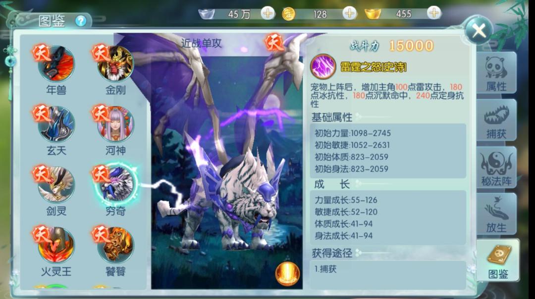 穷奇的护主技能【雷霆之怒】可以为主角增加雷性伤害,带着穷奇无疑是雷属性职业刀客最好的选择。