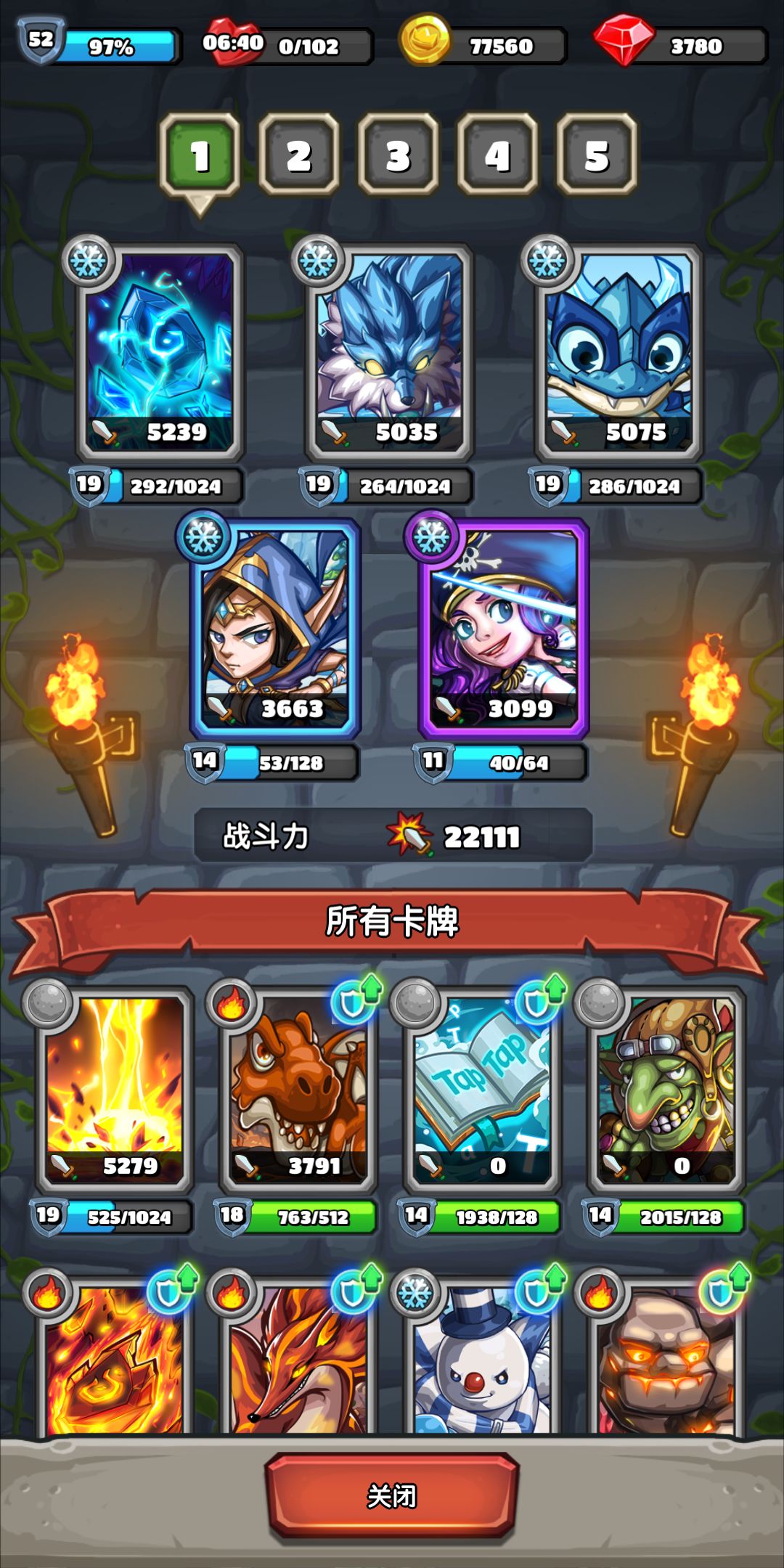 游戏五最重要的资源是金币和符文卡关了可以把哥布林升起来 带个战力一般的无属性卡牌到第二章随便找个关卡 疯狂合钱袋刷金币(顺便还能刷卡)符文只能通过成就获得 每天的四倍次数比起搞紫卡不如留着刷成就时候来一发的舒服 我现在一个3成就关卡 48符文来个四倍别提多舒爽了![[嗒啦啦2_哈哈]](https://img-tc.tapimg.com/market/images/1bbca193685a619674d8260ad0ed7455.gif)