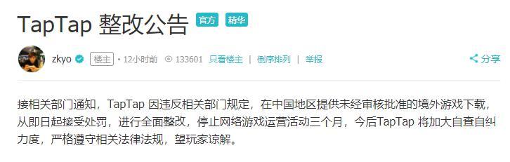 晚上10点,在TapTap的平台,我们看到了这条信息。