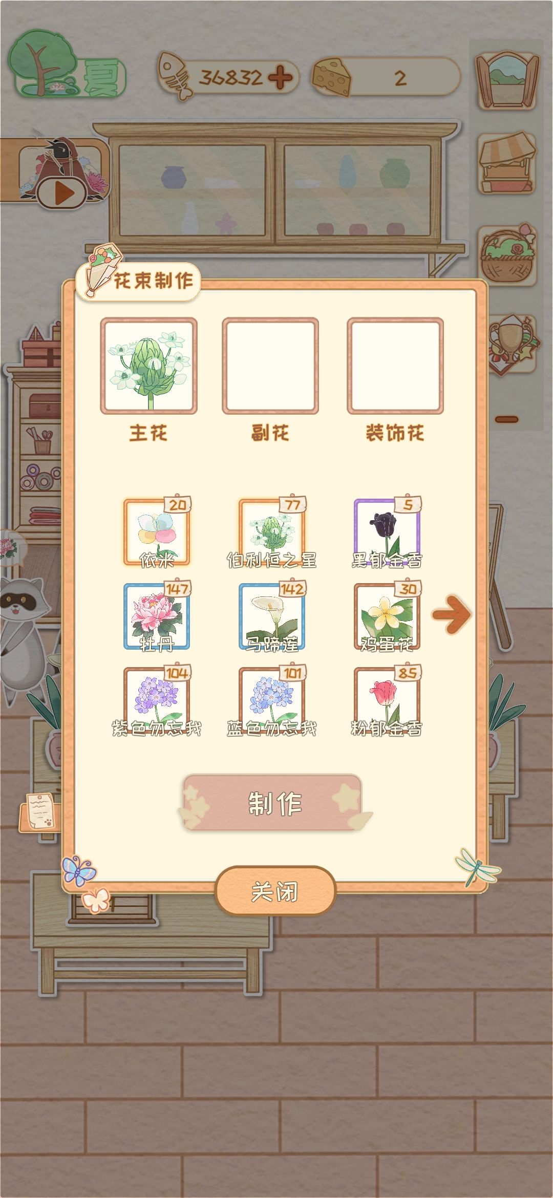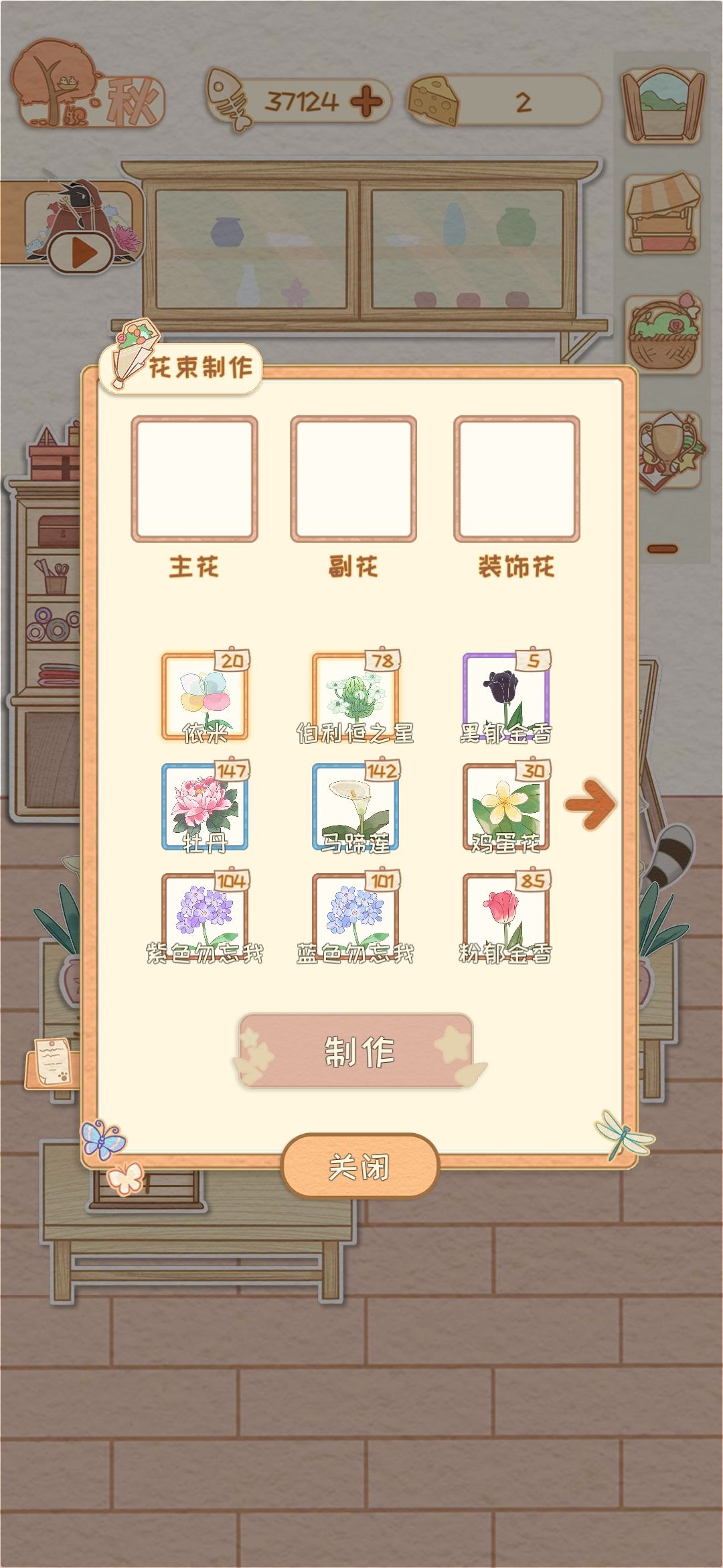 现在的花束bug是第一页第二页的冲突问题,具体表现在,最后选择“制作”的是哪一页,消耗的就是哪一页的花花