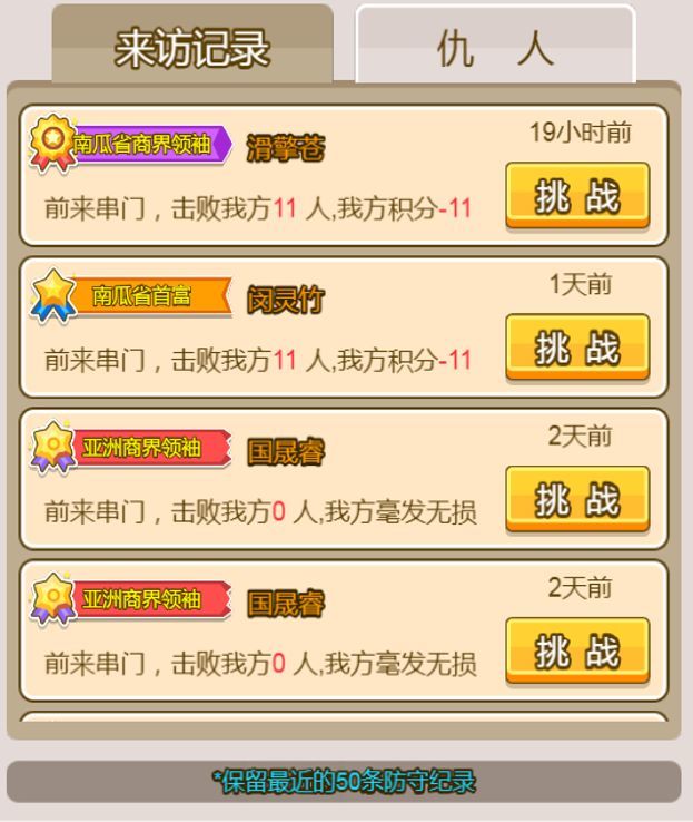 来而不往非礼也,对于敢于挑衅我们的对手,我们要及时反击。选一些击败我方人数较少的对手是比较好的策略,因为这样的对手会稍弱一点。如果我们实力更加强大,挑战商报上的玩家既可以增加我方积分,又可以减少对面积分,冲榜的时候这一招非常实用。