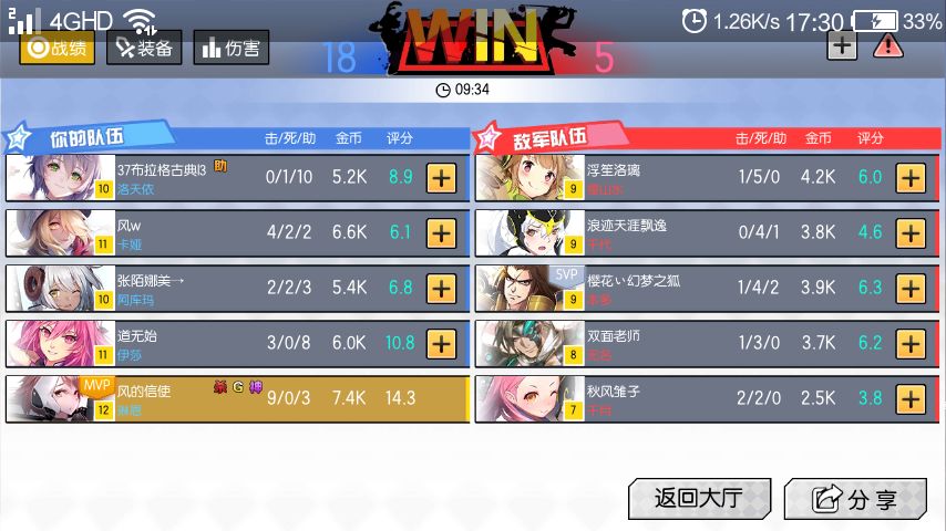 开局一红,游走(前提是对面没有控制系英雄如笑笑,八神,雪,会玩的千代)出来了破刃斩舰同级情况基本无敌(除了被群殴)