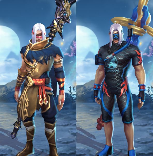 谣叔的时装跟他们都不一样,谣叔是要潜入深海的男人。所以山鬼谣特地换上了一套潜水服,背上的武器也换成了小鸭气球。。。(为什么感觉一点也不霸气了呢?)脸上的绷带被潜水镜代替了(所以谣叔你就是不想让我们看看你的脸吗。。)