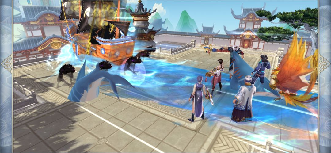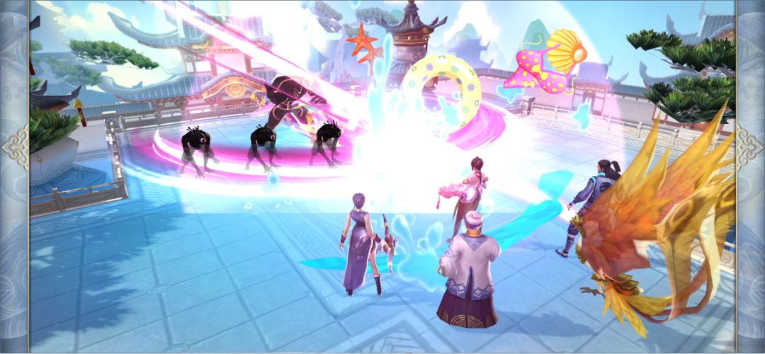 就比如,弋痕夕的千叶翔龙。本来是在空中画一个圈,然后召唤出四条青龙攻击敌方。