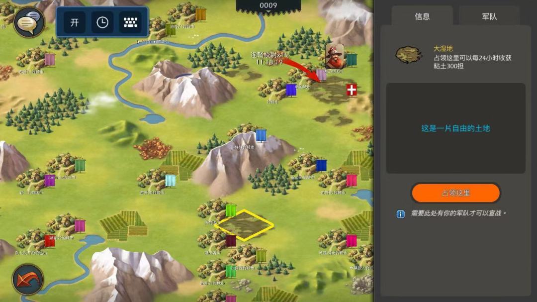 然后我们去大地图选择一块野地,再点击下方的军队控件。
