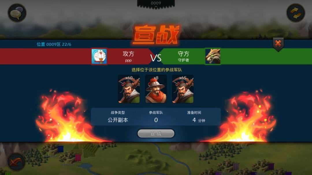 在战斗界面中,宣战的按钮首先是灰色的,我们在士兵列表中选中出战士兵后,这个宣战的按钮就会变成绿色,点击宣战就可以进入战斗了。
