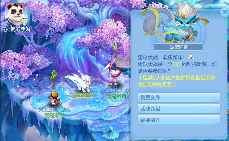 《神武3》手游元旦新玩法雪球大战、欢乐堆雪人、元旦盛典明日全服开放,在雪球大战中, 少侠可以化身为三种造型,每个造型的血量和速度都不一样。此外,人物、宠物本身属性、技能等都对活动没有影响。而且战斗中只能使用活动道具。赶快来参与雪球大战吧,更有机会获得神兽之灵哦!