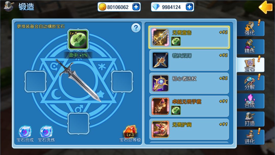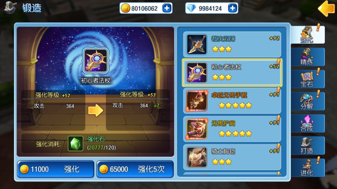 锻造装备强化的时候需要用到强化石,强化石你可以分解装备获得,或者挑战副本和去商店购买。