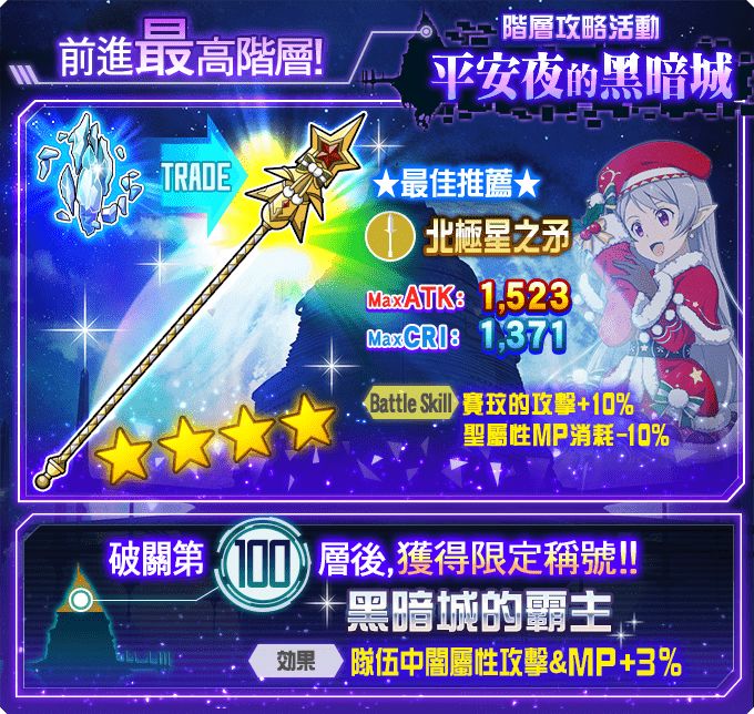 第100層 黑暗城的霸主 自己隊伍中的闇屬性角色攻擊&MP增加3%