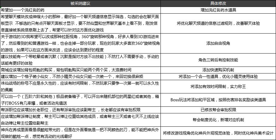 同时针对建议配合游戏实际,我们进行了微调适配,但是主心骨还是来自玩家的建议哦