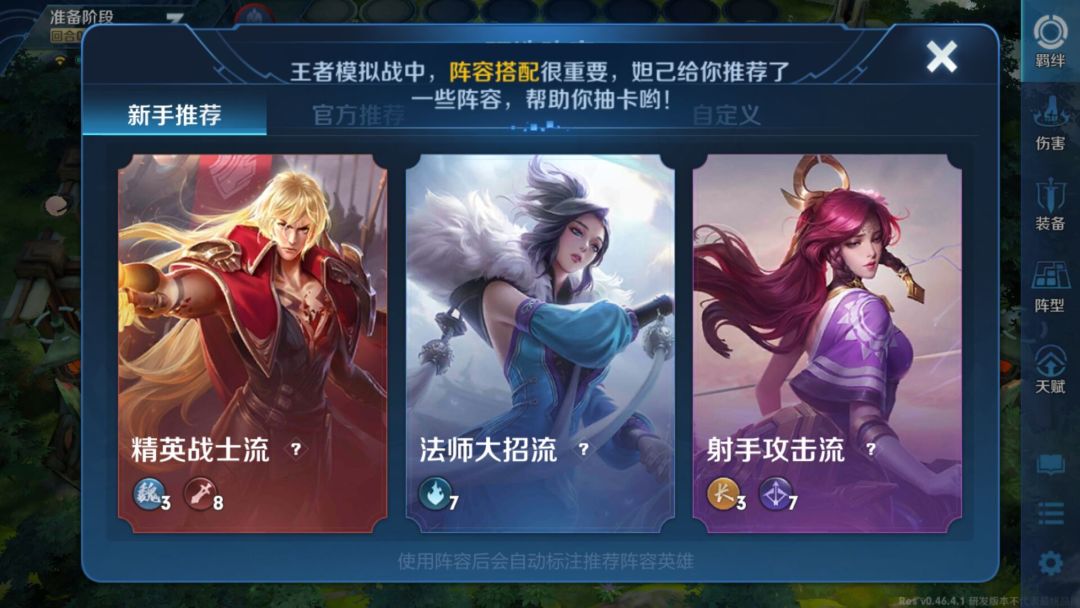 新手引导功能贴心,阵容、站位、装备都有自动推荐功能。