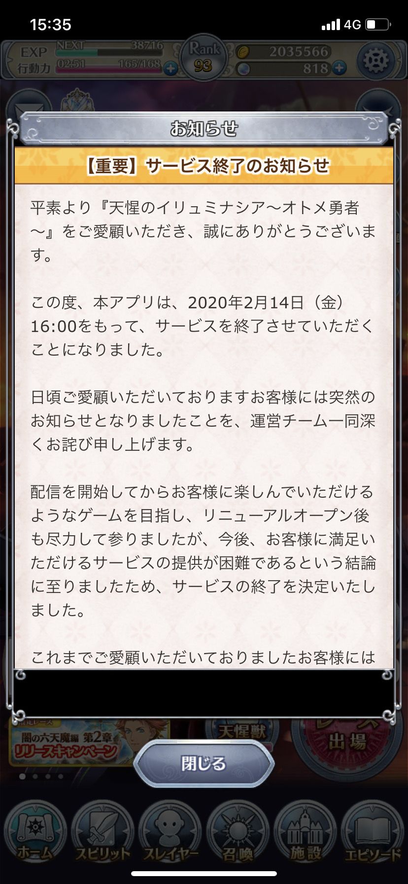 【悲报】乙女勇者停止运营&最后的感谢祭卡池消息