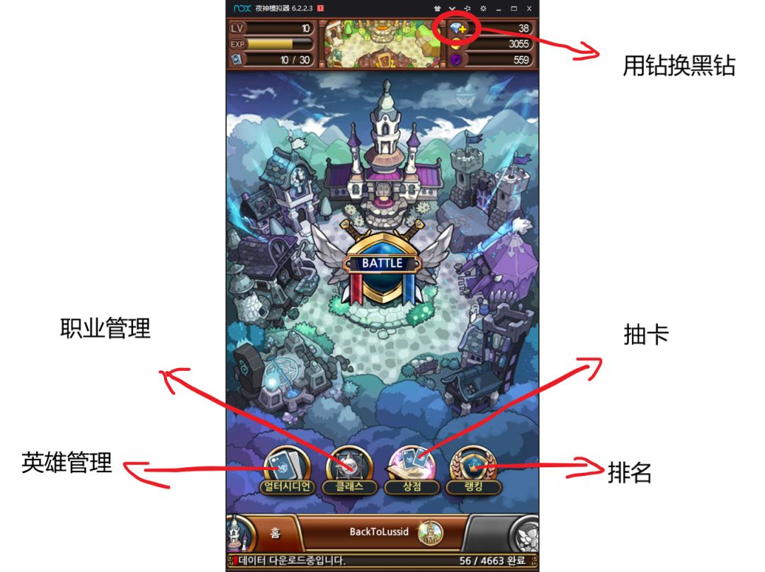 1. 游戏语言是韩语,貌似没找到换语言的地方。但对只是想体验一下的人来说倒不是什么问题。下面会附图简单说一下操作。