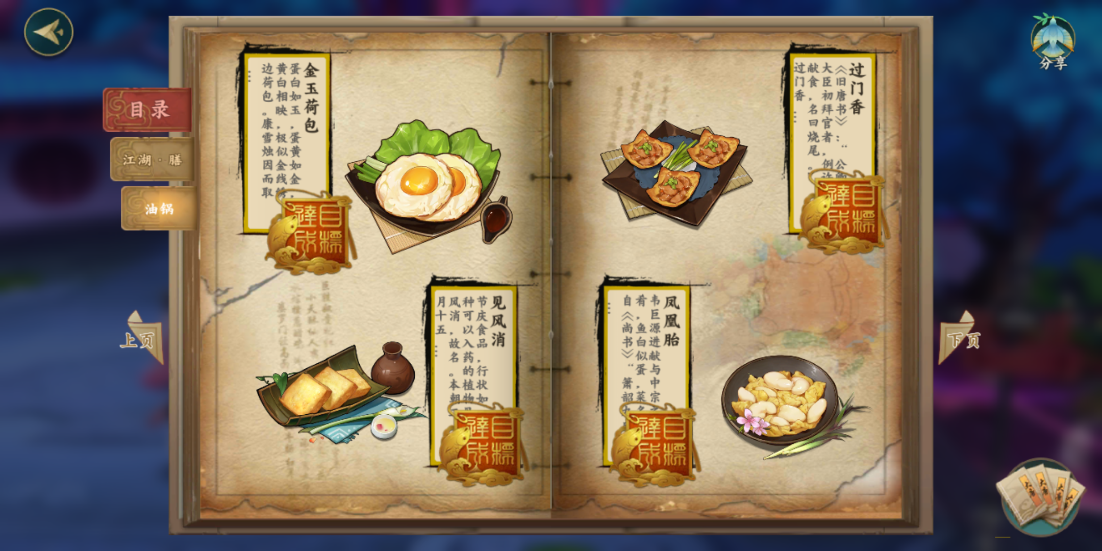 目标是集齐人物和菜品!