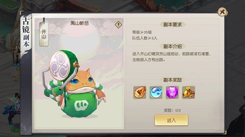 玩家在35级的时候便可挑战古镜副本啦,而且古镜副本每天都会变幻,其中周一到周五分别为水、火、风、光、土5个副本,周六、周日为难度较高的上古魔兽副本,大声提醒,在不同战斗携带不同的古镜会有奇效哦!