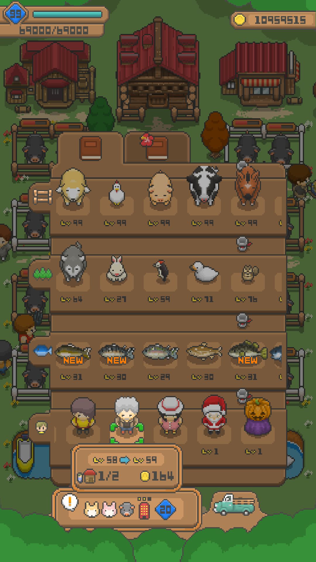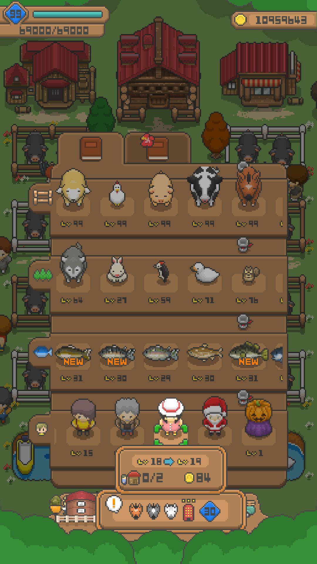 A:水池(魚塭)等級到了就會自己解鎖囉!但是能釣到什麼完全是隨機,跟魚池種類無關。加上所有魚種都混在一起,所以沒辦法像飼養家畜那樣快速提升單一等級……只能全部魚池化讓魚自己慢慢升等