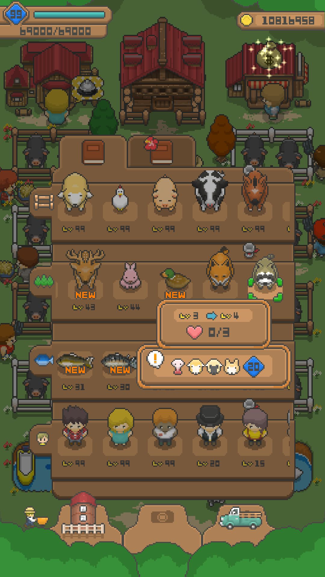 防雷廢話,這遊戲在出第二農場之前,我就玩過並在收集完圖鑑後就刪了,那時候有沒有玩到老爺爺說的99級獎盃……忘了,然後在2017年10月左右看到有第二農場,才又載來打算全破。