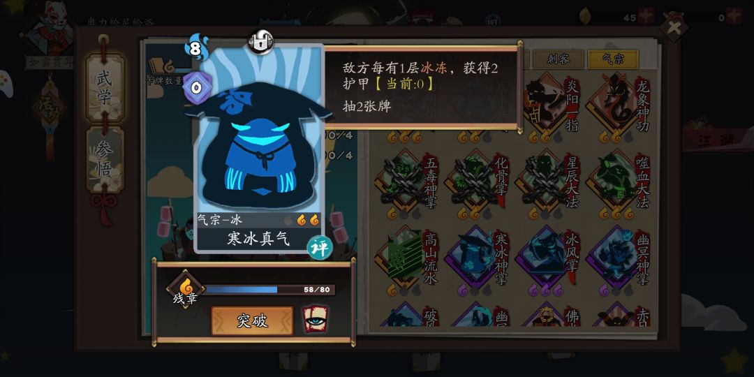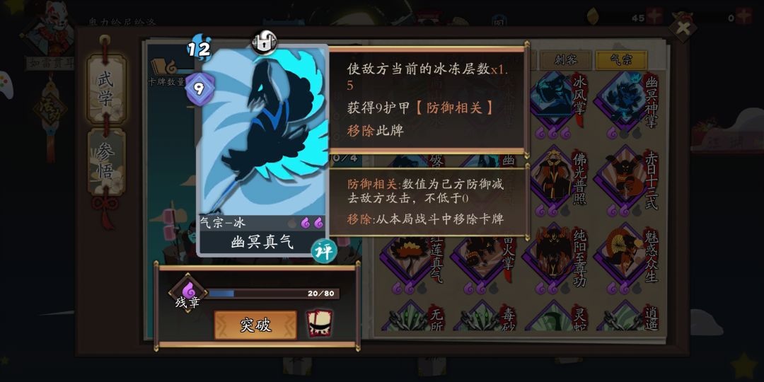 寒冰真气是我们这个套路的核心,相当于汽车的发动机。(寒冰真气一定要两星以上。)幽冥真气相当于汽油,油越多,我们就越猛。不过,车子可以没有汽油,但一定要有发动机,不然卖二手车都不值钱了。