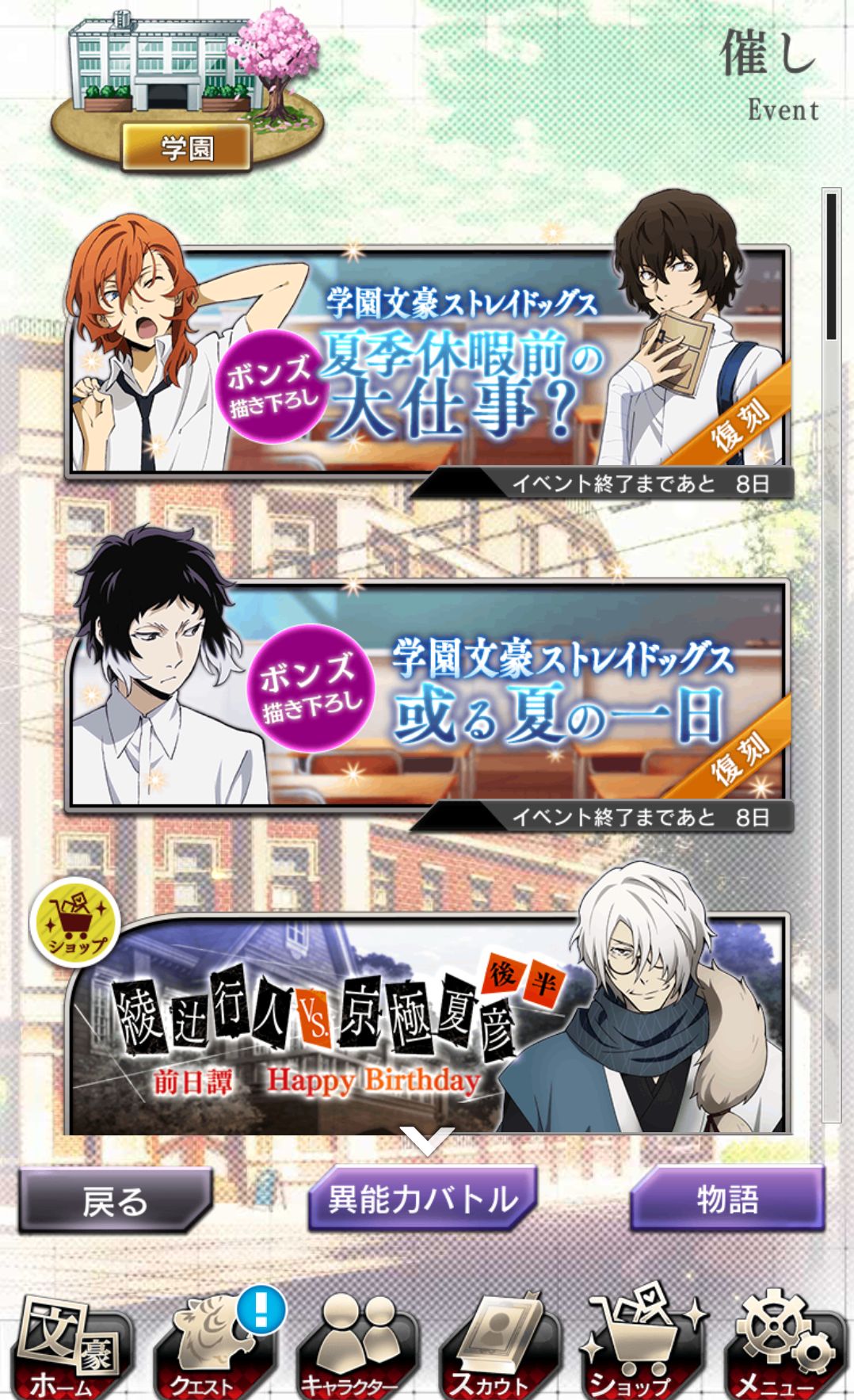 掉落物与EP可以兑换物品,其中包括恢复体力的饮料及升级素材和用于进化的素材还有活动特别卡牌(一般都是SR)