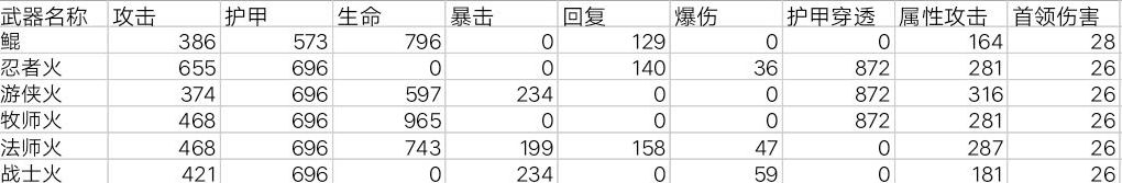 把防具的各项副属性属性比例和武器的各项副属性平均值的比值求出,我们可以大概得到下面的属性转化结论: