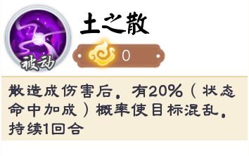 土系boss·散——造成伤害后,有20%概率(受状态命中/抵抗影响)使目标混乱,持续1回合。