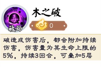 木系boss·破——造成伤害后,破会为其附加持续性伤害,伤害量为破生命上限的5%,持续3回合。
