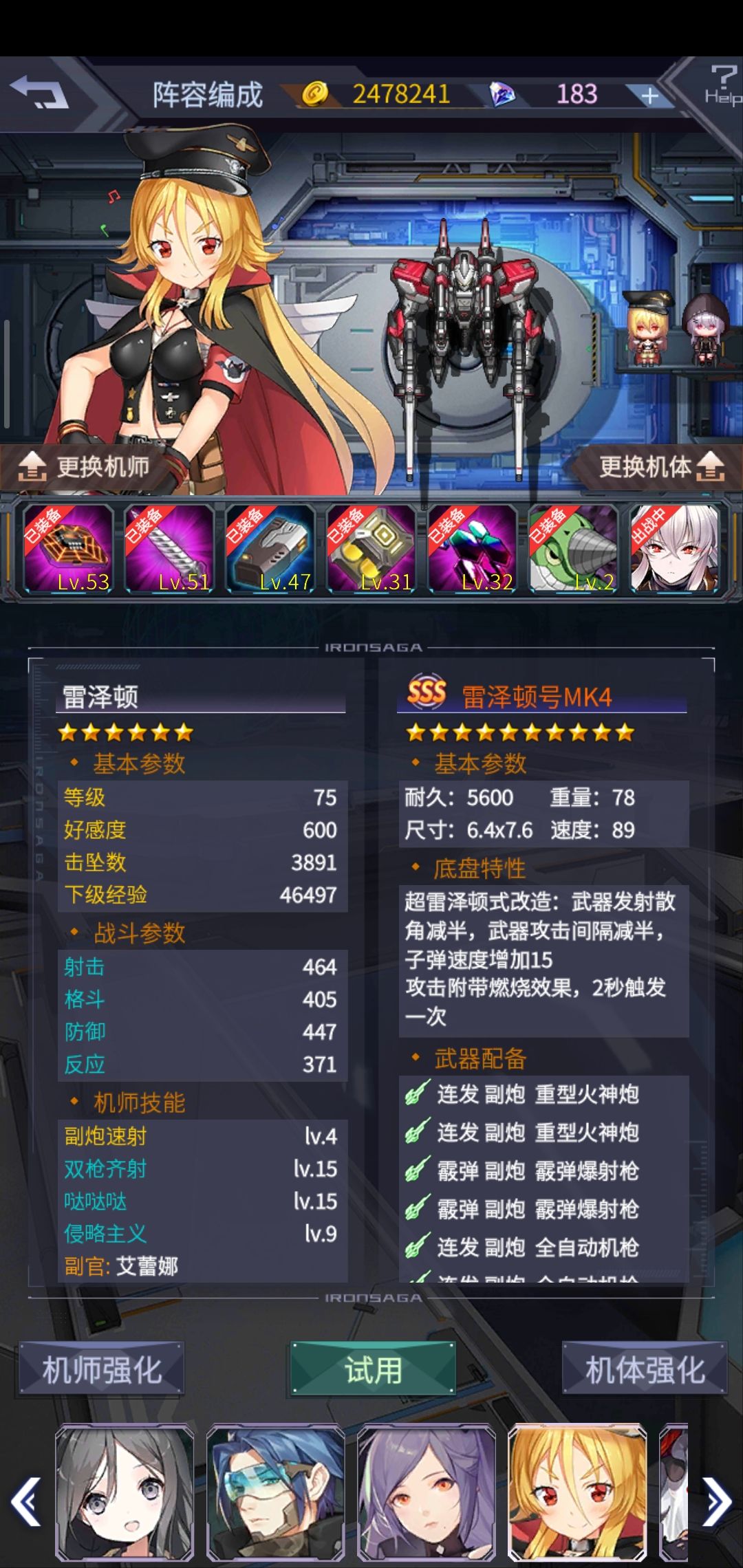具体就是原能坦克援护型是输出主力,海因西里开雷诺破防加制导,副输出雷泽顿,然后近战当t,注意近战选择动作多的比如瓦u,一定要有吸血能力,可以考虑副官带全吸,扛不住再带紫洗,第五个位置带黑豹(百分百正减)防止近战暴毙