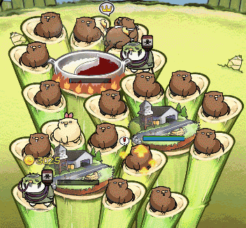 在游戏中,玩家的操作非常简单,只需不断地点点点,便可以刺激这些萌萌的竹鼠去跳火锅,落地成盒,洗马桶…….so easy~