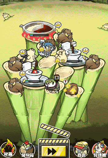 此外,不要忘了让竹鼠努力赚钱,提升试炼场噢!锻炼耐热的鸳鸯火锅,提升胆量的降伞厂,锻炼水性的冲水马桶……