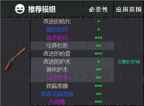 为了方便说明,我将我们的可改造武器分为几个梯队,每次更新将介绍一个梯队的三种我所推荐的武器配件。