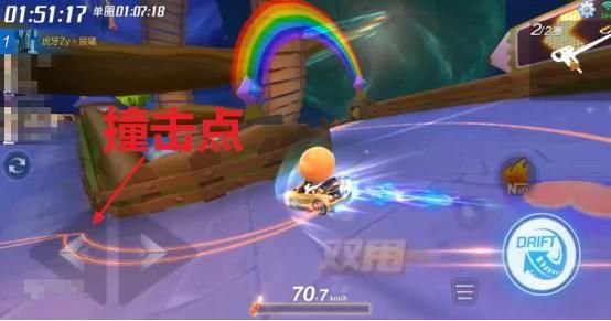 最后,在从天空降落的时候,落地之后要马上准备大漂移,提前向右侧准备漂移。