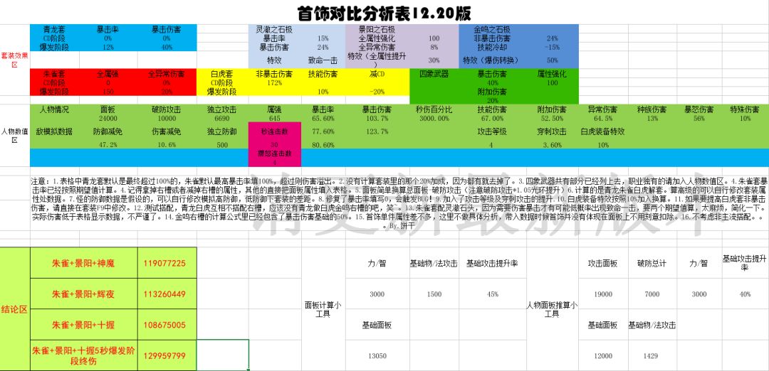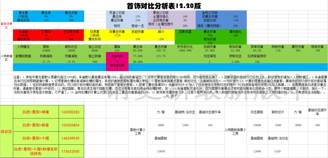 下面我们再带入自身数据进行验算比较一下。因为有人会问我,我青龙套,景阳右,或者我朱雀套,做什么首饰好,等等问题。我们都带入看看好了。