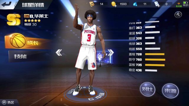 玩好一个球星,首先要清楚球星的角色定位,绝不能用自己的短处跟对手硬拼。从华莱士的属性图中可以看出,华莱士在游戏中是一个相当偏重于防守的球星。也可以说是一个比较极端的球星。他的力量、盖帽、防守和篮板属性都是橙色属性,其余均为白色属性。这就非常明确了华莱士的定位——防守强悍,进攻孱弱。所以玩华莱士首先要做到的就是凶悍的防守,在防守端给对方巨大的压力,在进攻端,主要的任务是保护进攻篮板和为队友挡拆,为队友创造进攻机会。二、打法攻略