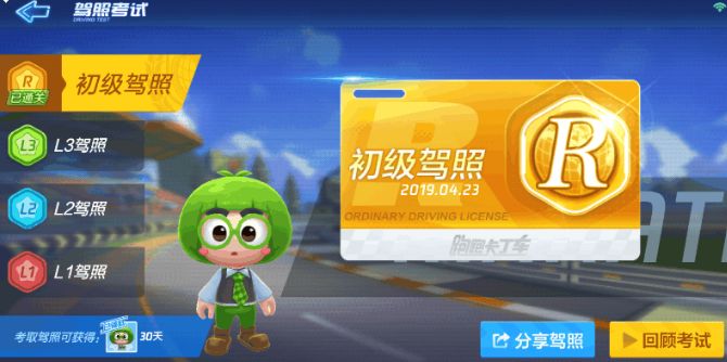 首先跑跑卡丁车的驾照考试分为了四个等级,包括初级驾照、L1驾照、L2驾照以及L3驾照,初级驾照的考试内容比较简单,基本就是弯道驾驶、L型弯驾驶这类非常基本的操作,只要多玩玩游戏就很容易通过啦,所以今天咱们的重点还是在L1驾照上。