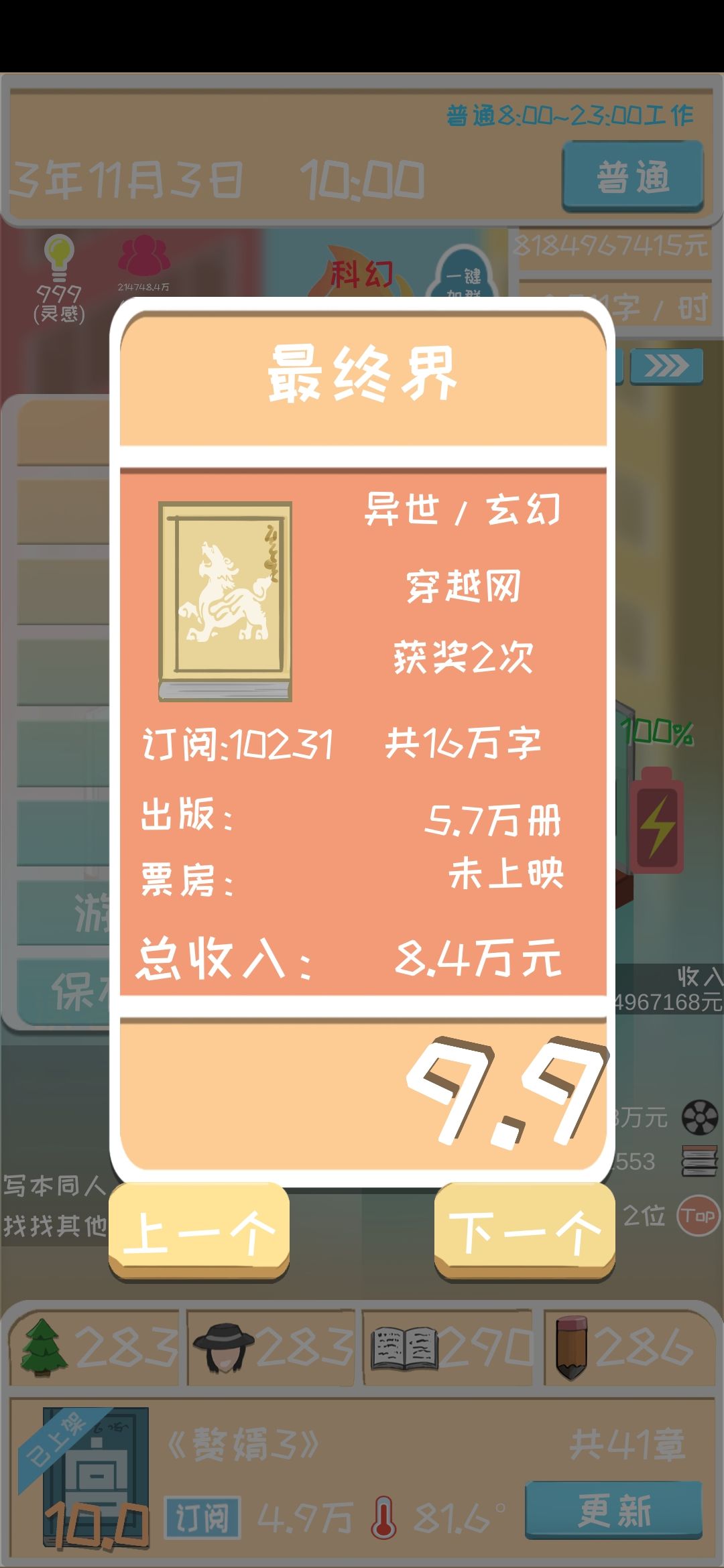 然后每本书写到22章就完结