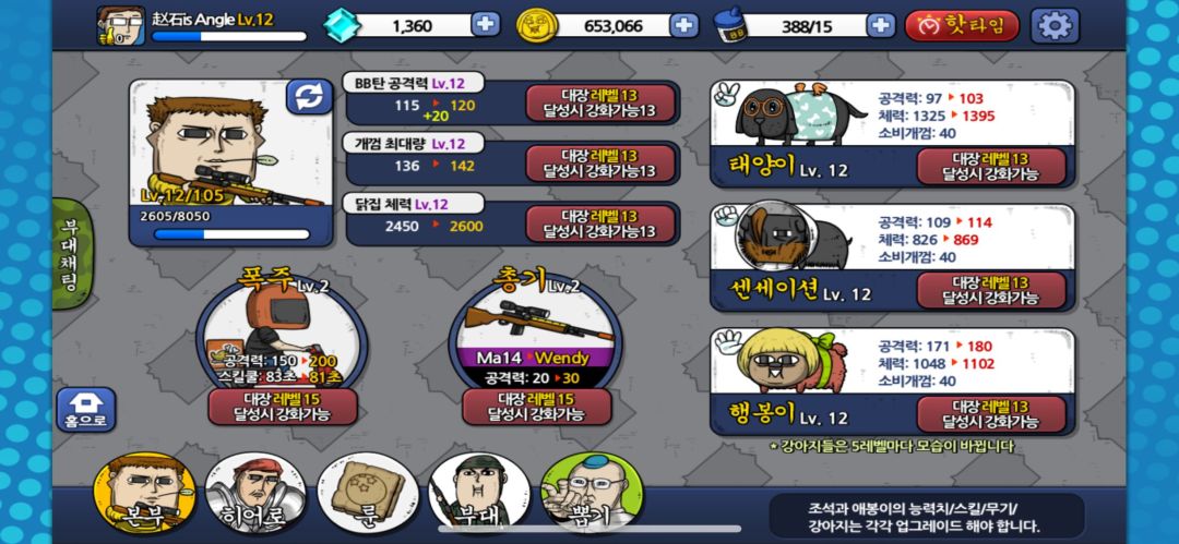 总部里就是点升级①BB弹的容量,发数,伤害度。②飙车技能③武器进化④三只狗太阳轰轰爱丰的等级(宠物等级随赵石等级提升而提升)