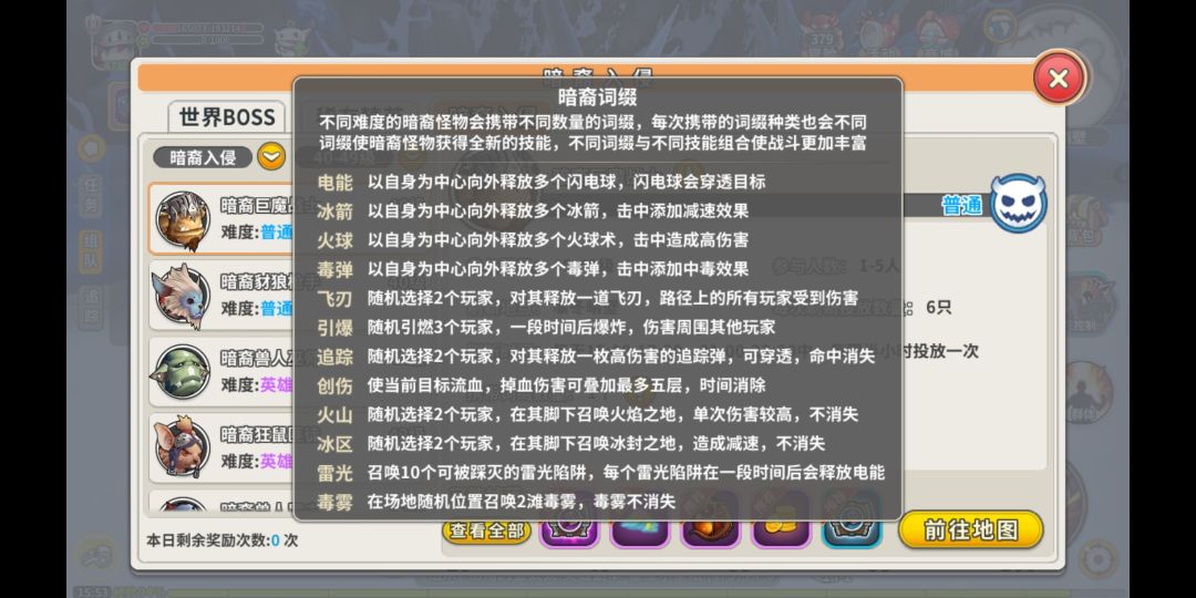 世界boss(对于很多常规游戏来说,世界boos应该可以说是奖励丰富程度很靠前的那种的活动。但是在光明勇士来说,并不。首先它有每周次数限制,只有四次。一周只能获得四次奖励,四次过后再打就没有任何奖励,而且奖励除了坐骑飞龙没有什么稀有东西。只有经验和银币。更多玩家仅仅是为了那些经验去的。而且!世界boss除了血多,攻击不痛不痒,亲测小号奶妈,被大招打只掉了一滴血。也许有bug,但是真的没难度,除了多费时间没有什么意思)有一个增加世界boss奖励次数的道具,叫怪物金币(没记错的话)除了不给经验其他奖励都有,当然飞龙坐骑还是随机。至今开服如今都没见过飞龙。爆率感人