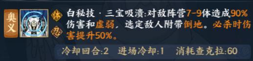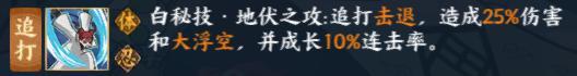 分析:超强的追打。第一回合加10%连击率,第二回合加30%,第三回合加50%,累计增加90%连击率。不过一般来说,第二回合就已经稳定起手了。并且十人卫的两个追打可以互连,不需要其他人参与。
