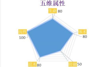 千代十人卫的五维还是非常符合傀儡师的定位。傀儡师不擅长近身战,所以防御是相当低的。千代的抗性非常高,不过这里用处也不大。十人卫千代是一个超级输出的C位,一般我们不会用她来抗伤的。