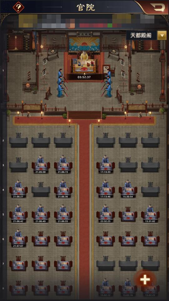 1.大人可在京城占领不同等级府邸,府邸等级越高,行动力产出越多(未占领府邸的大人将享有基础行动力产出),若大人出现行动力不足时,也可使用行军丹恢复行动力;