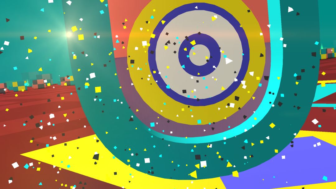 初看,这是一款刺激的竞速游戏,画面采用了比较少见的波西米亚艺术风格,整体给人一种自由奔放的感觉,而浓烈的色彩则给人强烈的视觉冲击力,再加上动态的视觉效果,游戏的气氛被烘托的异常紧张,尤其是飞船撞到障碍时的分子破碎,简直让玩家心都揪起来了,但配合上恶搞的音乐后,则让游戏又多了一个标签——魔性,很多时候听着音乐都让我忘了在开飞船了。