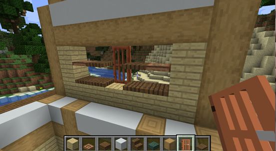 最后,在活板门旁边围一圈橡木栅栏,一个简易阳台就做好啦!
