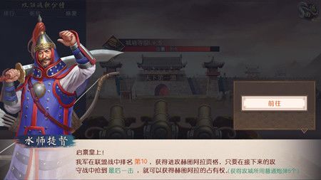 备注:各位圣上会优先进入5场【联盟海战】积分角逐,最终积分排行第一的联盟将获得【赫图阿拉】守卫资格,2-10名的联盟则晋升为【赫图阿拉】争夺者。