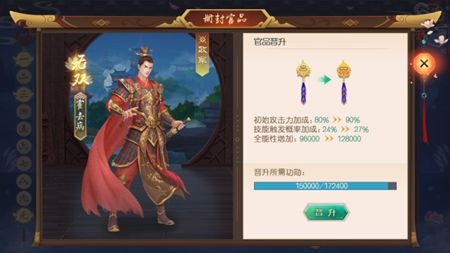 ●封品作用:封品可以增加大臣的总属性、校场的初始攻击力和技能触发概率。
